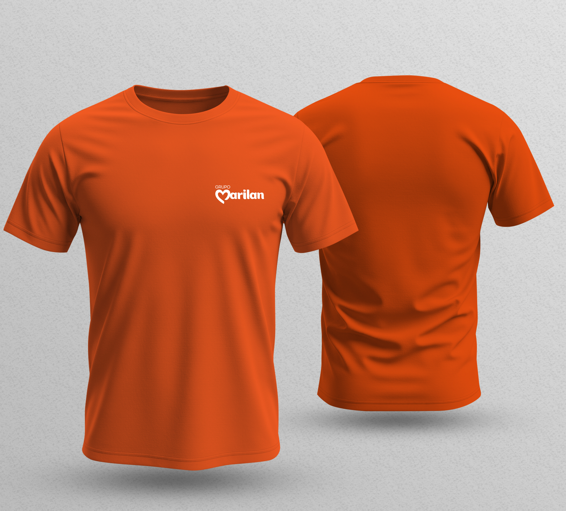 Frente peito: logotipo GRUPO MARILAN estampado.