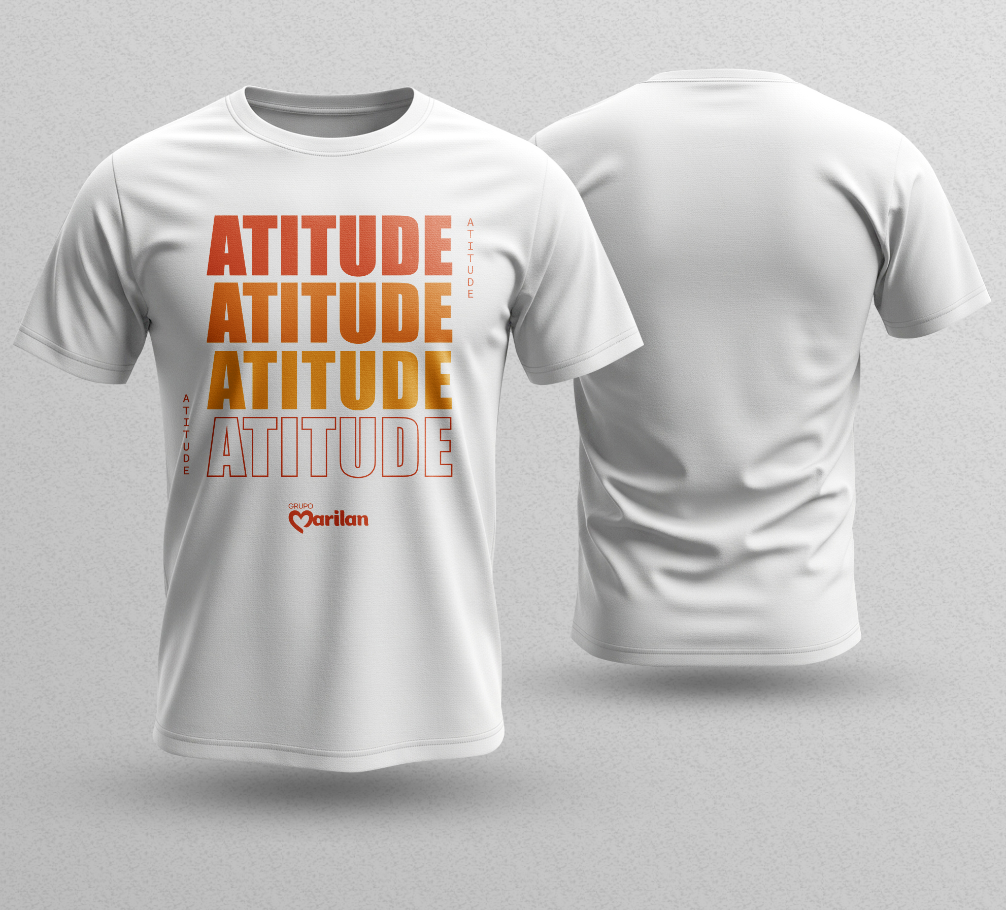 Frente Peito: logotipo ATITUDE E GRUPO MARILAN em DTF.